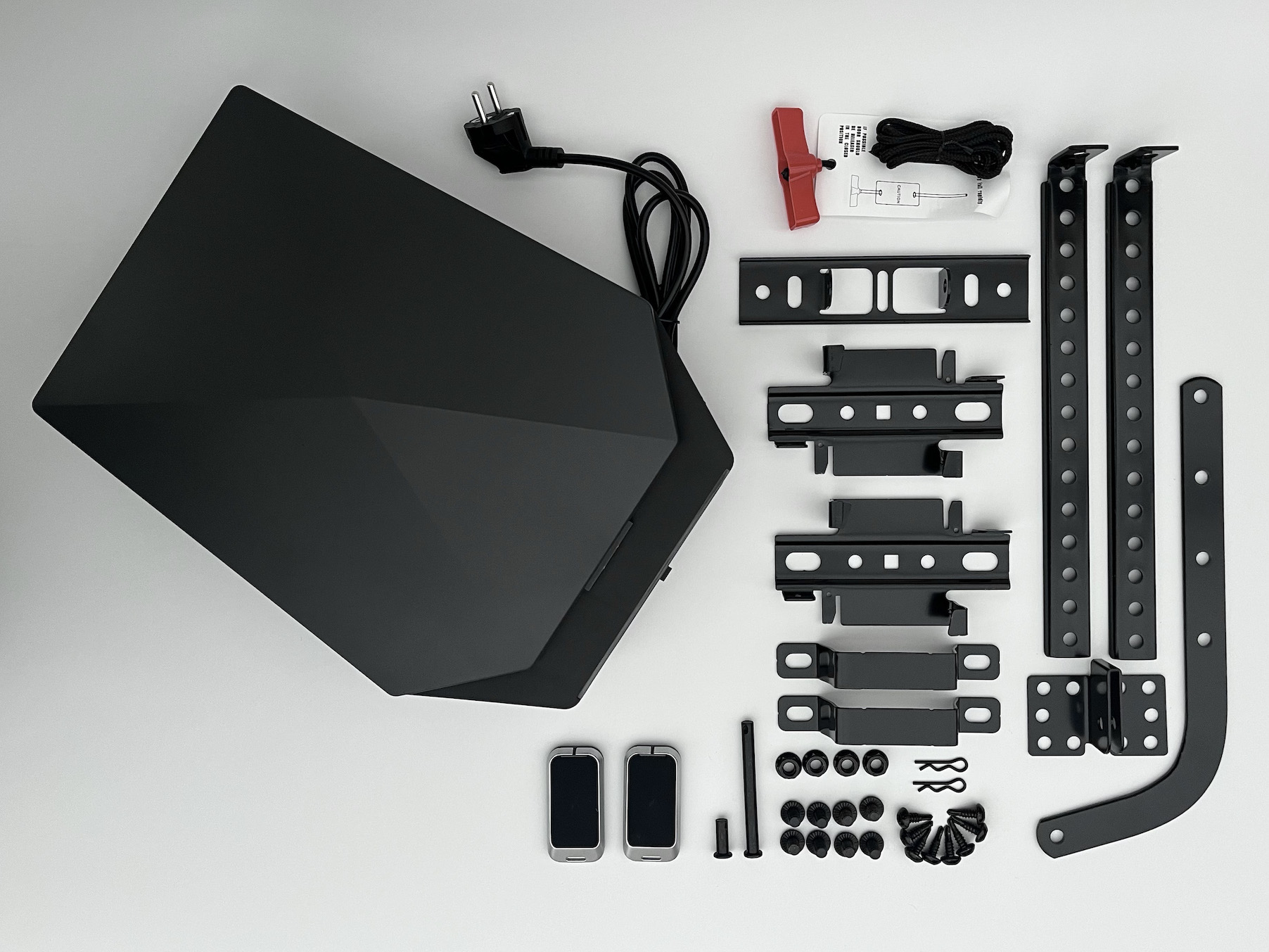 This set contains motor head, 2 pcs RC08 transmitter, 2part 4000 mm black rail with belt, installation kit